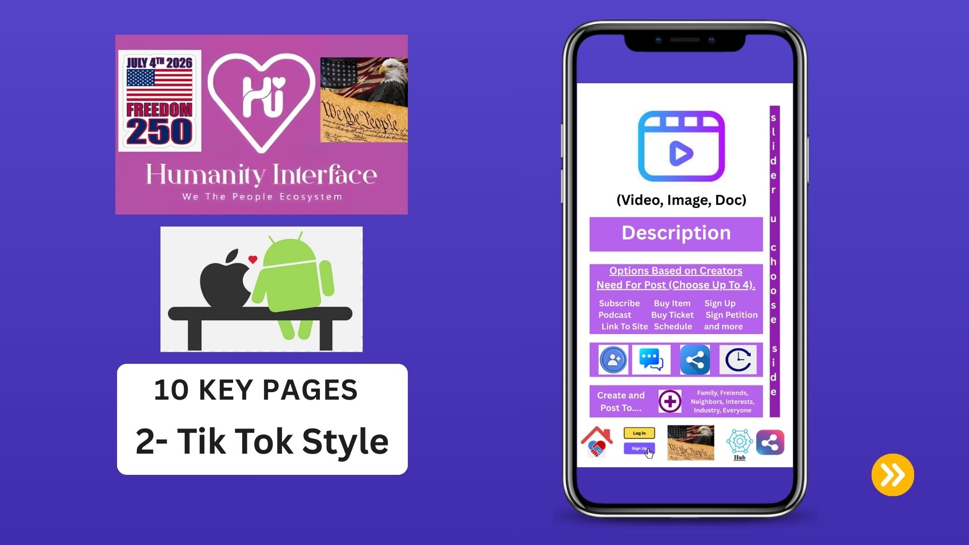 Have you ever wondered why there are so many people in need and so much negativity and division? Us to; and after living through experiences and learning from the people and really discovering the root of the problem we are creating the solution. The people are being used and manipulated by the system for a few that gain the most. Humanity Interface We The People Ecosystem is an ecosystem of several industries and is run and owned by the people. It will have the functionality of TikTok. We have started building and need your support to help continue. Together we can help millions by providing the heavenly hand up.